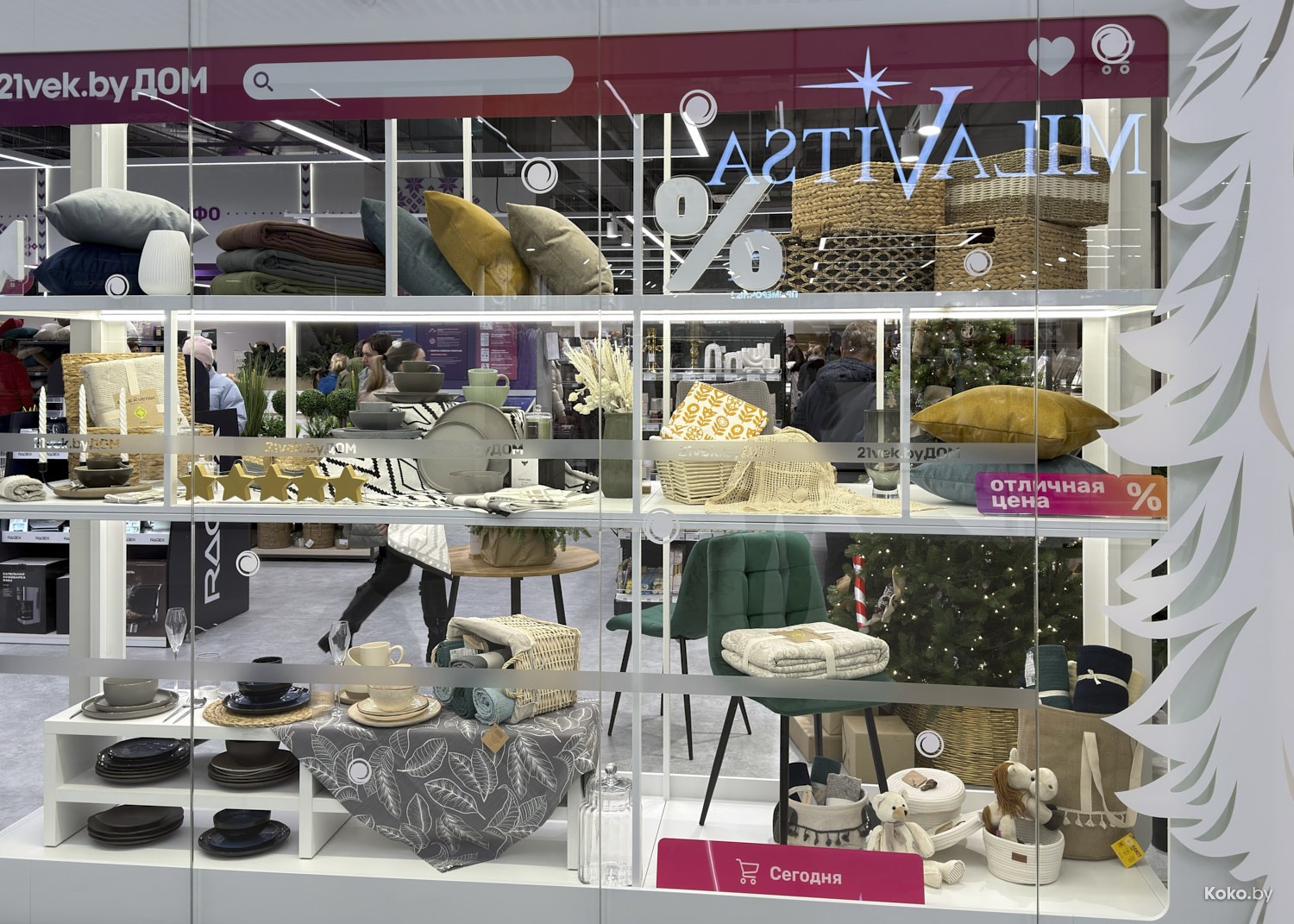 Пока мы охотились на новые сырки, тестили один за одним открывающиеся заведения, в ТРЦ «Червенский» открылся первый офлайн-магазин 21vek.by Дом на 2700 квадратных метров. Чтобы в него попасть, с центрального входа поверните направо и идите против часовой стрелки за людьми, которые тоже его ищут. Два этажа, всякое интересное для дома из Китайской Народной Республики и Алиса, рассказывающая про мебель через Яндекс станцию.