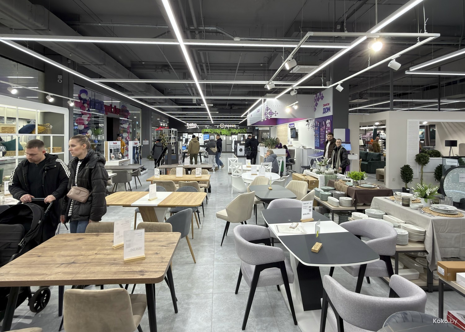 На месте можно затестить, насколько удобен понравившийся диван, подходит ли высота стола, как открываются шкафы и сочетаются материалы. А если чего-то нет, можно заказать с сайта, и вам привезут.