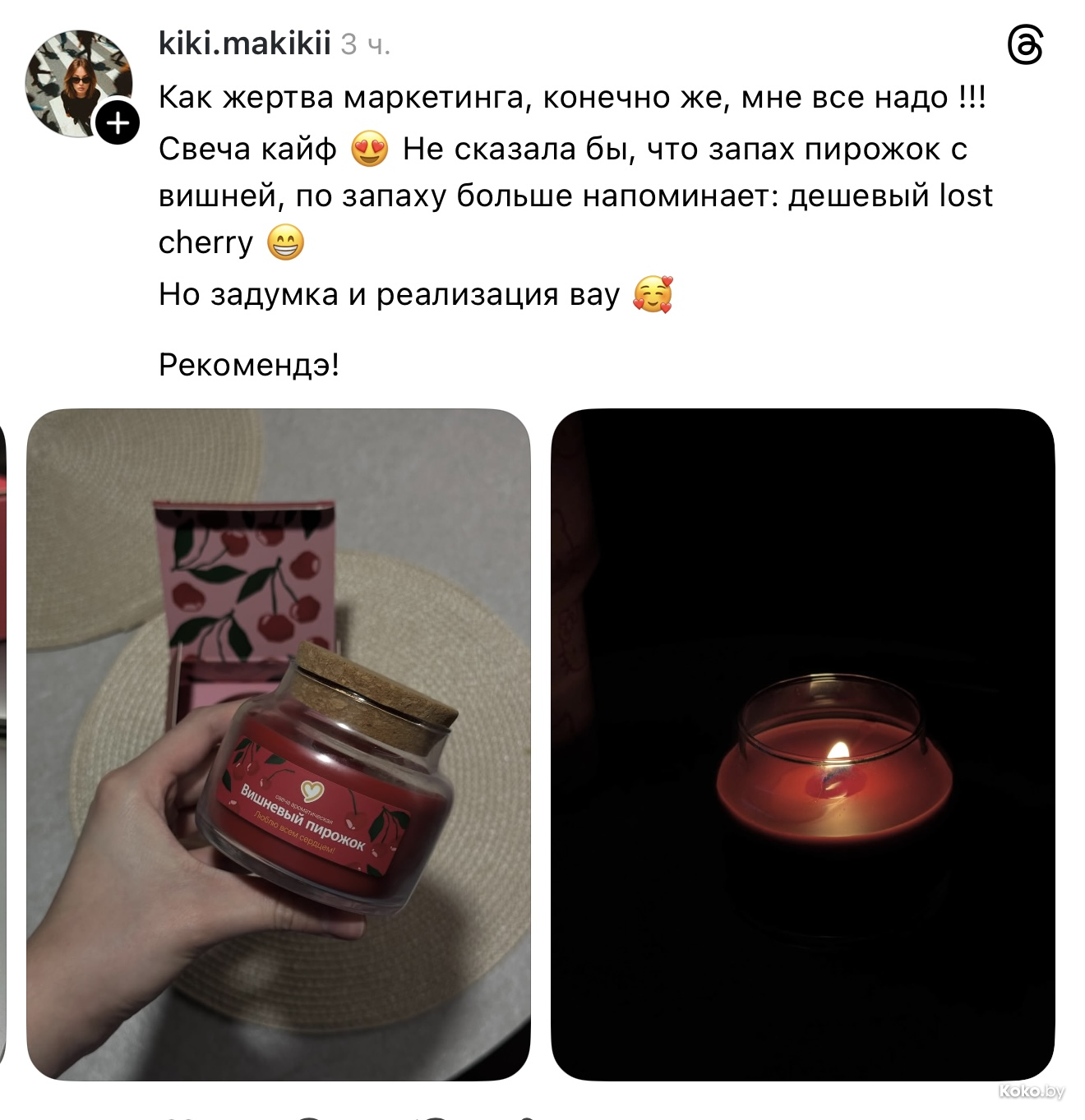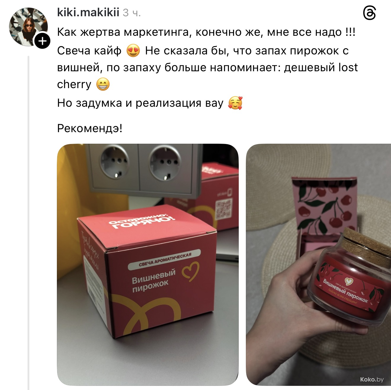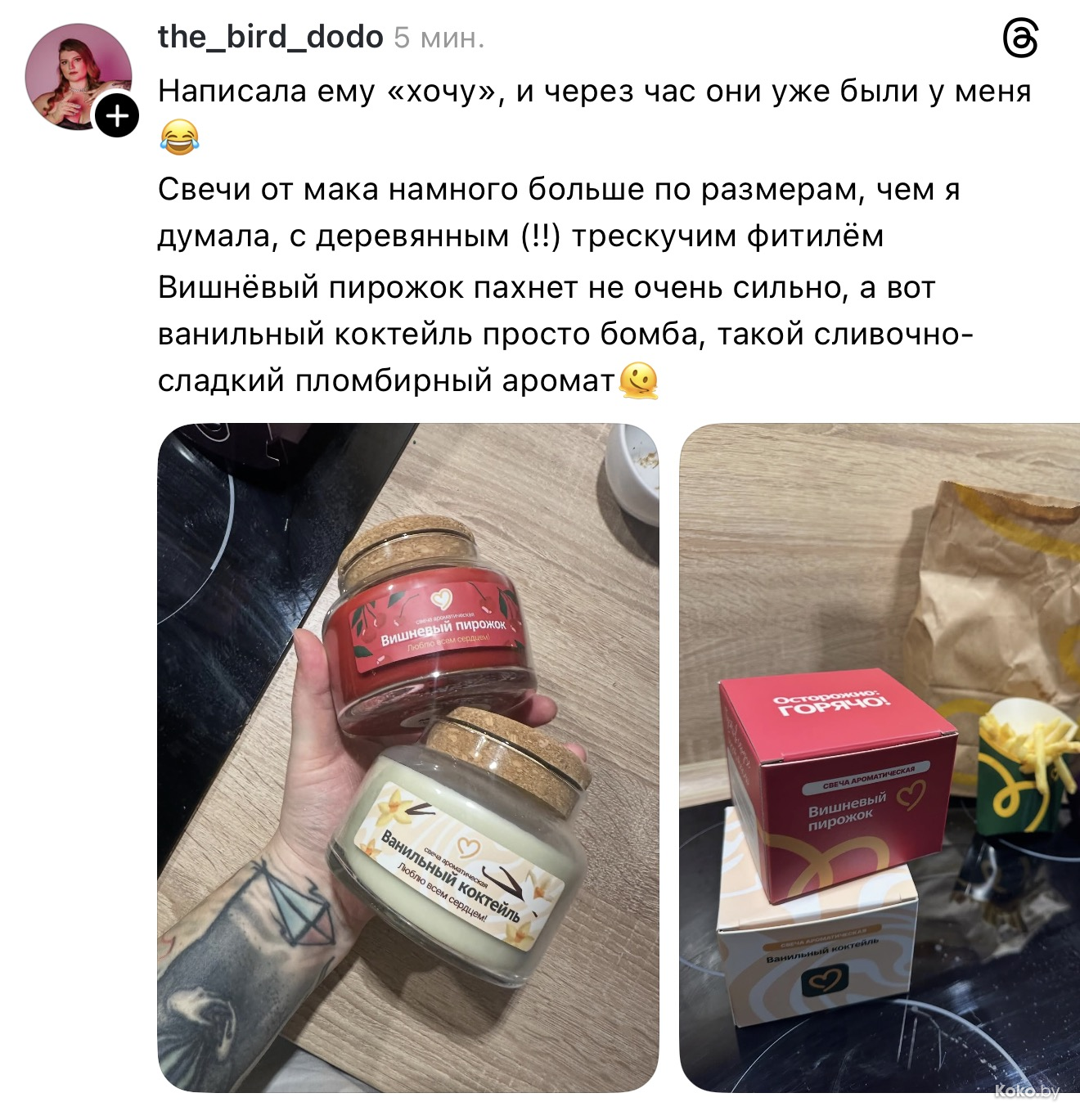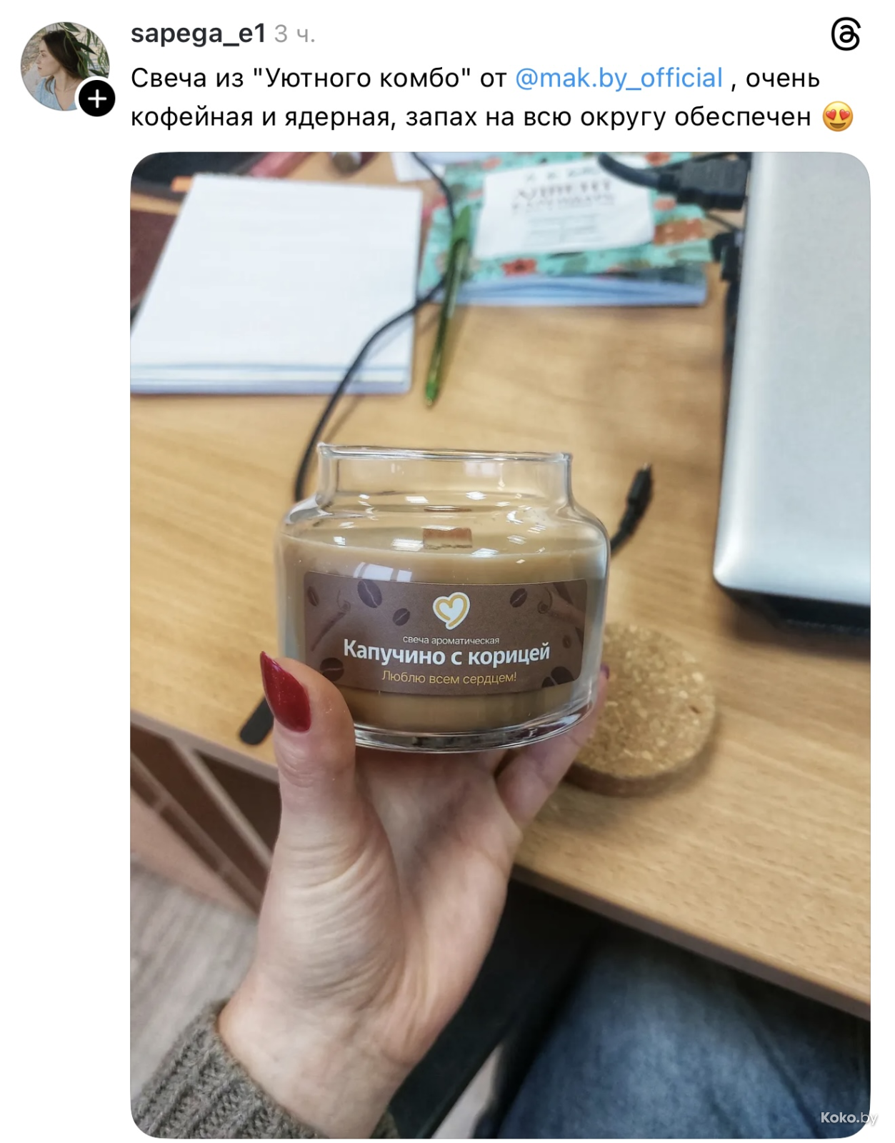 Утром 18 декабря во всех ресторанах «Mak.by» на кассах появились необычные свечи с ароматом кофе с корицей, вишнёвого пирожка и ванильного коктейля. Чтобы зажечь такую свечку дома, нужно купить Уютное комбо от 34р до 42,90р, цена зависит от того, насколько вы голодны. Каждая свеча находится в праздничной упаковке и, судя по объёму, готова гореть несколько дней, наполняя комнату ароматами кухни Макбая. Обзор со старта набрал сотни тысяч просмотров.