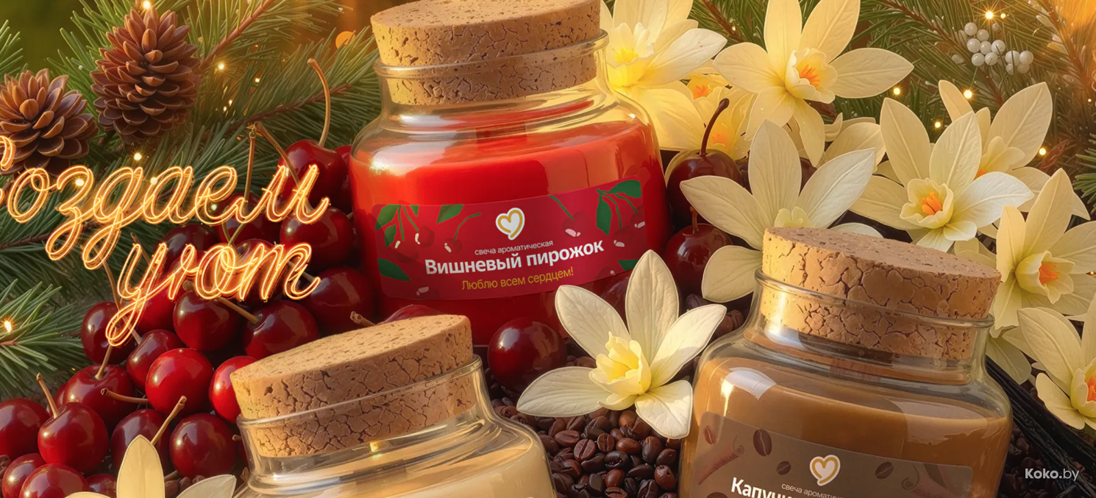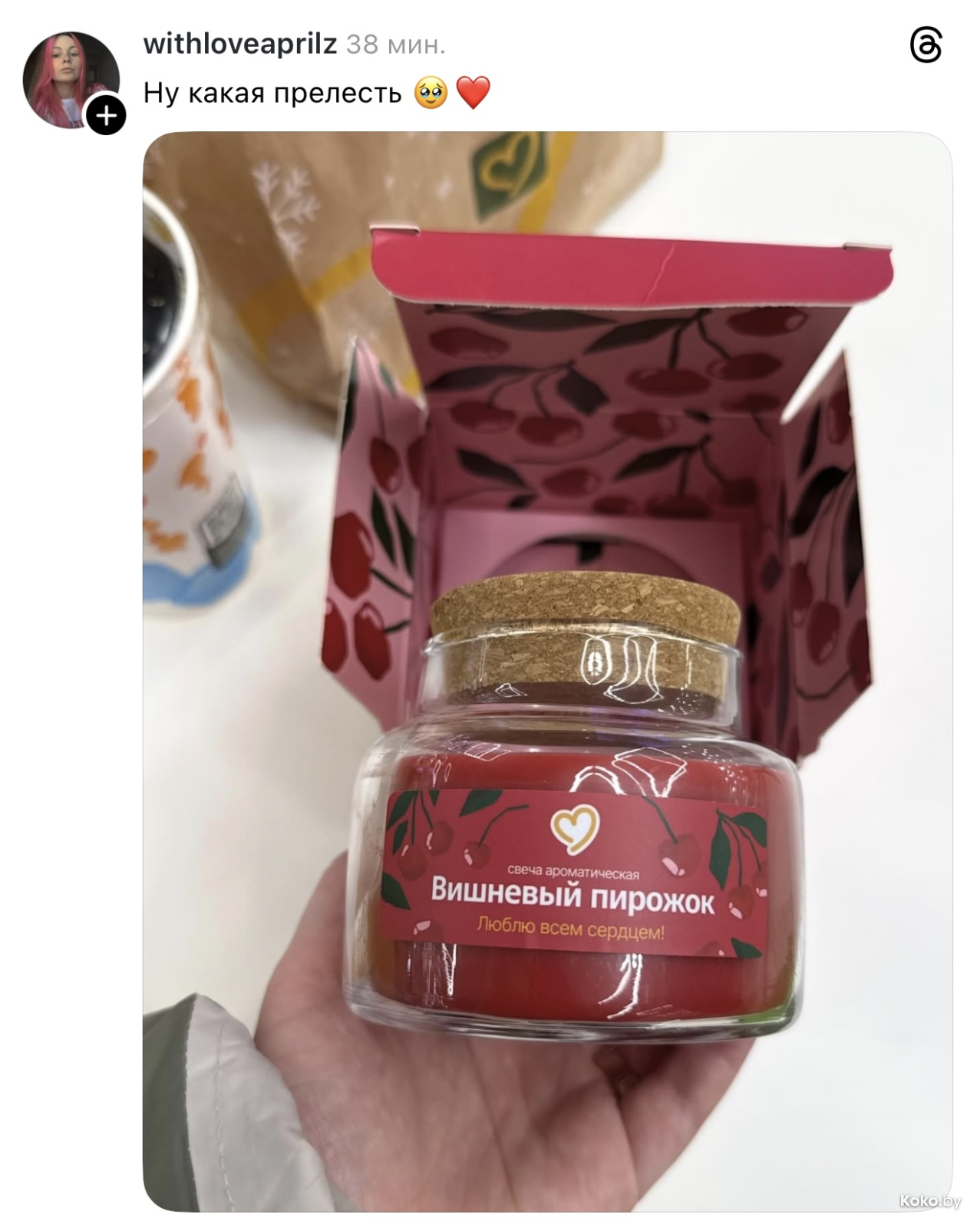 - Брендированная свеча с ароматом любимых продуктов