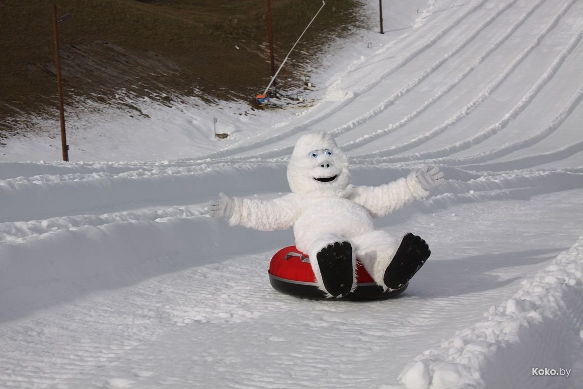 Самые крутые горки для катания на тюбинге сейчас в спортивном комплексе «Раубичи» по 5 рублей за весь день