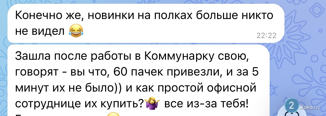 Вот только выдохнули после новинок января, как со спины подкрался февраль, новая Алёнка Бэйби к этому времени с полок пропала. Первой бешено залетела Золотая пчёлка «Красного пищевика», за ней веганский майонез с линий «Минского маргаринового», и суток не прошло, как за пивными конфетами от «Коммунарки» устроили настоящее сафари. Фирменные магазины пострадали первыми, на этой неделе ищите в «Доброномах», «Соседях» и «Семи пятницах».