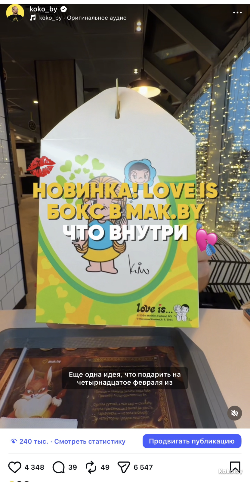 Это, конечно, не веганский майонез к Великому посту, но тоже ситуативная новинка! Бокс на 14 февраля с лицензионными игрушками Love is...с 12 февраля постепенно развезут по всем ресторанам Mak.by.