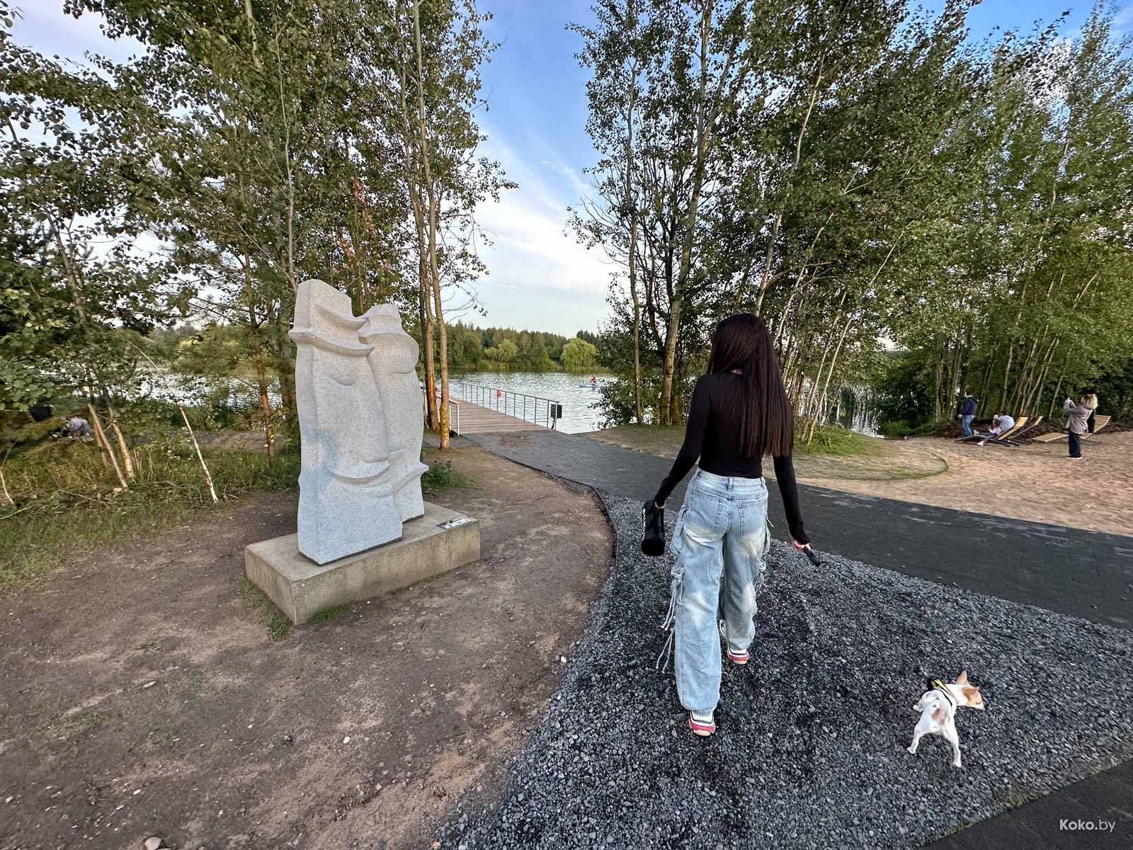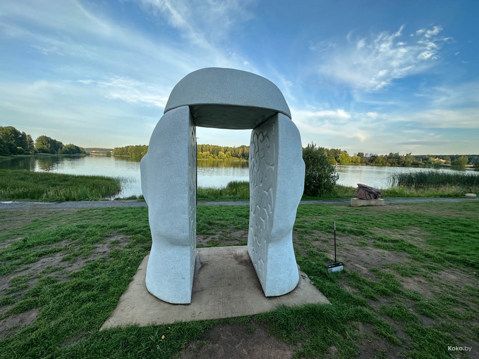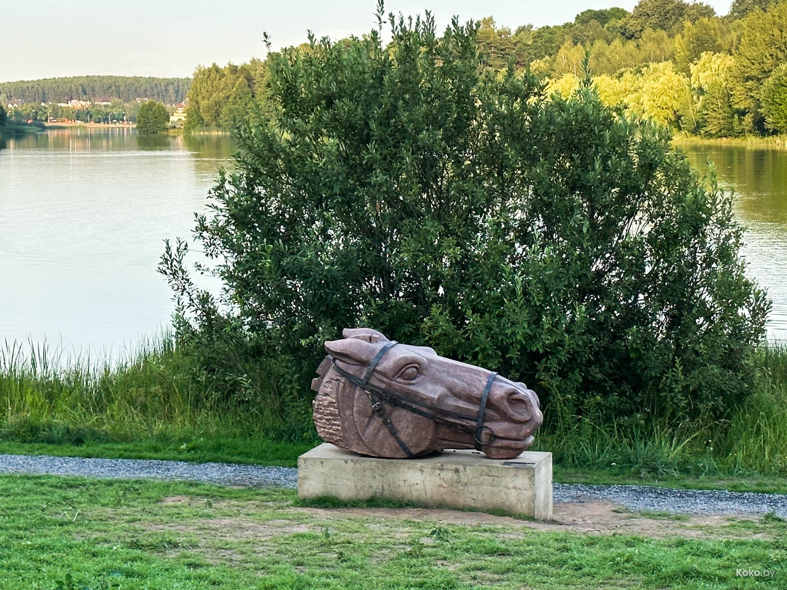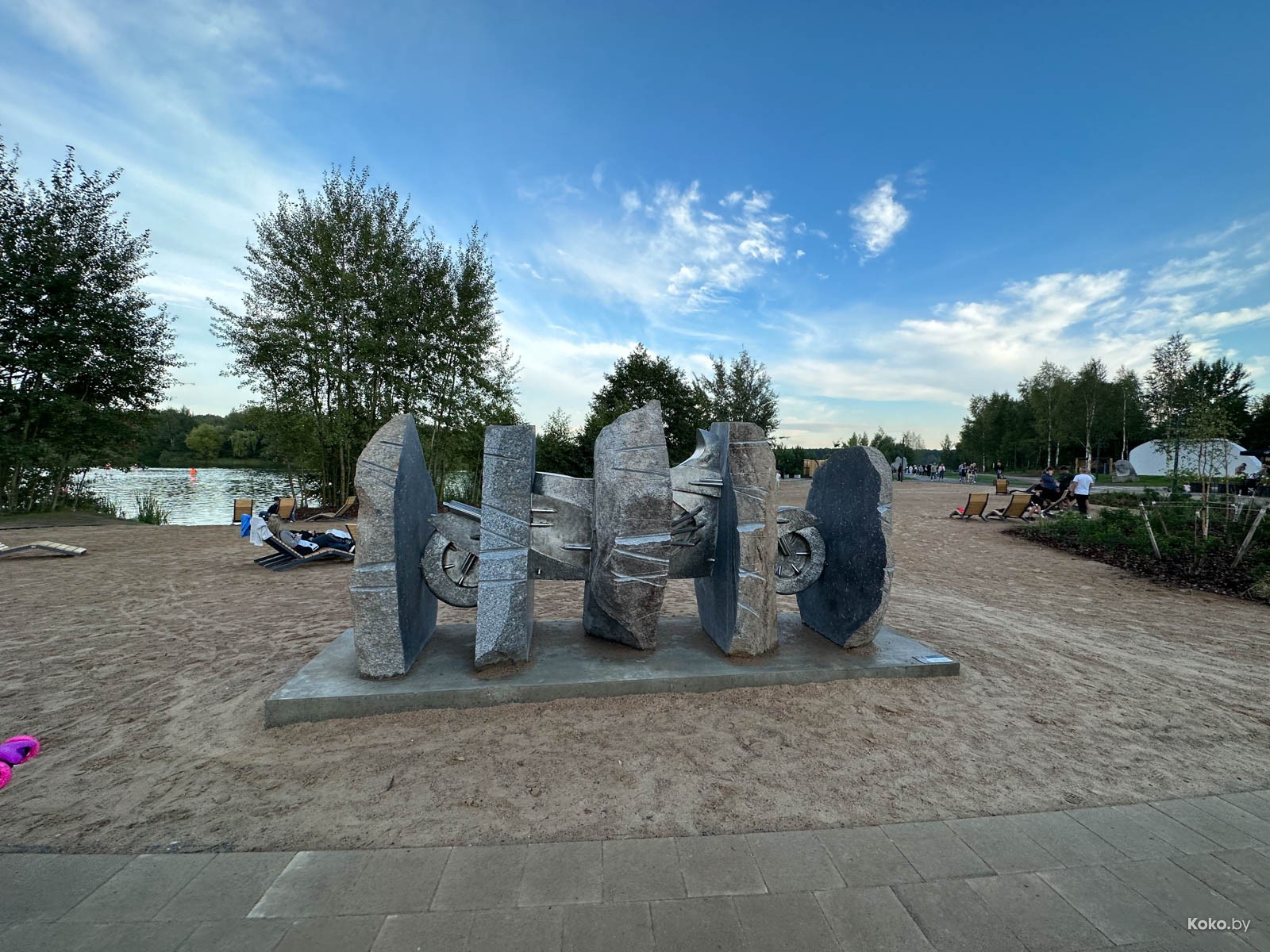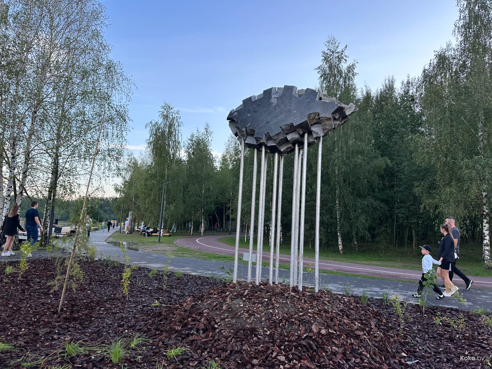 Вдоль всего парка красуются монументальные работы наших художников. Кто на что горазд: камень, дерево, металл.