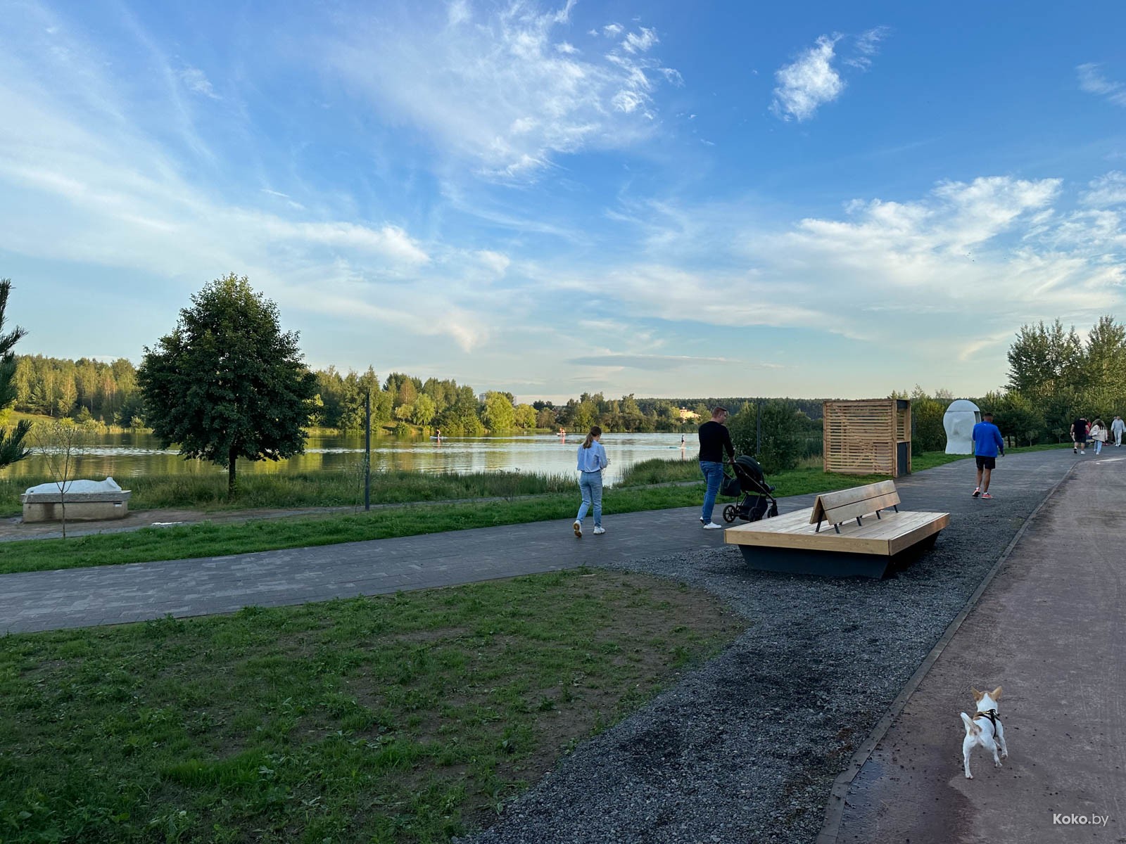 Территория парка в минималистичном стиле, чтобы не нагружать природу, но при этом есть всё, что нужно для отдыха: