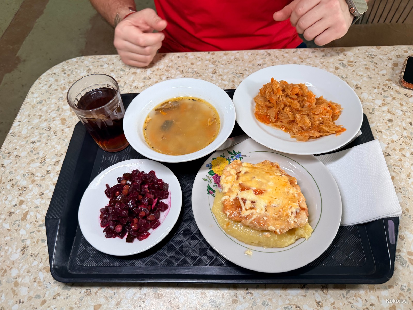 Обеденный поднос еды из трёх курсов с чаем обошёлся по цене одного капучино на банановом молоке в хипстерской кофейне.