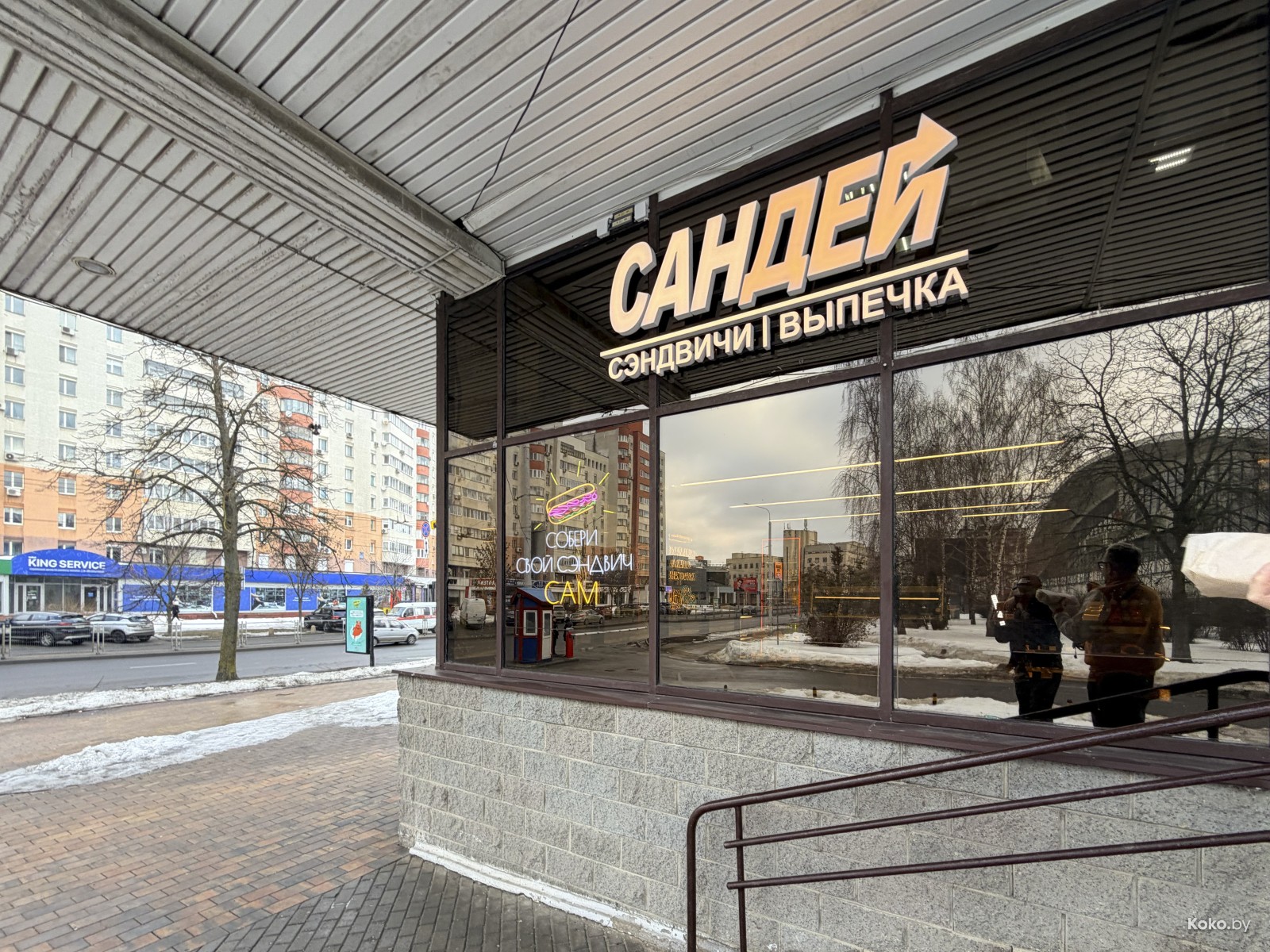 Недолго кипел казан в здании ультра популярного в мои годы торгового центра «Паркинг». Сомнительное место для кафе на улице, где кроме собак и меня никто не бегает, теперь вместо чайханы открыли бутербродную под вывеской «Сандэй» с каким-то сильно узнаваемым дизайном. Из названия понятно, что они собирают сэндвичи из того, что есть на витрине, ну и бонусом размороженные сосиски в брецеле и всякая домашняя выпечка. План так себе!