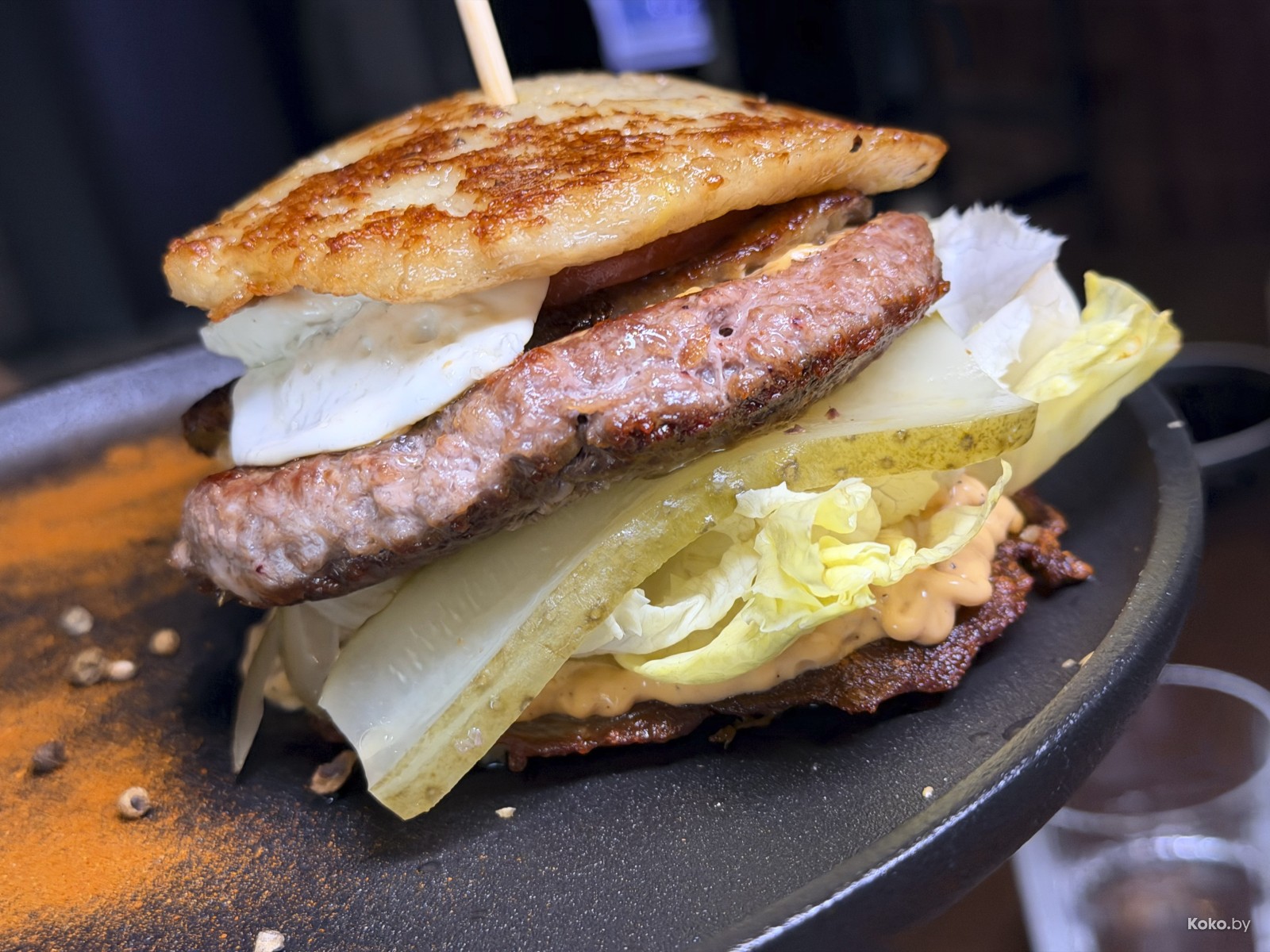 Вкусно собрали, в отличие от борща прям много. Как за завтраком молвил дед, драником ничего не испортишь, даже бургер.